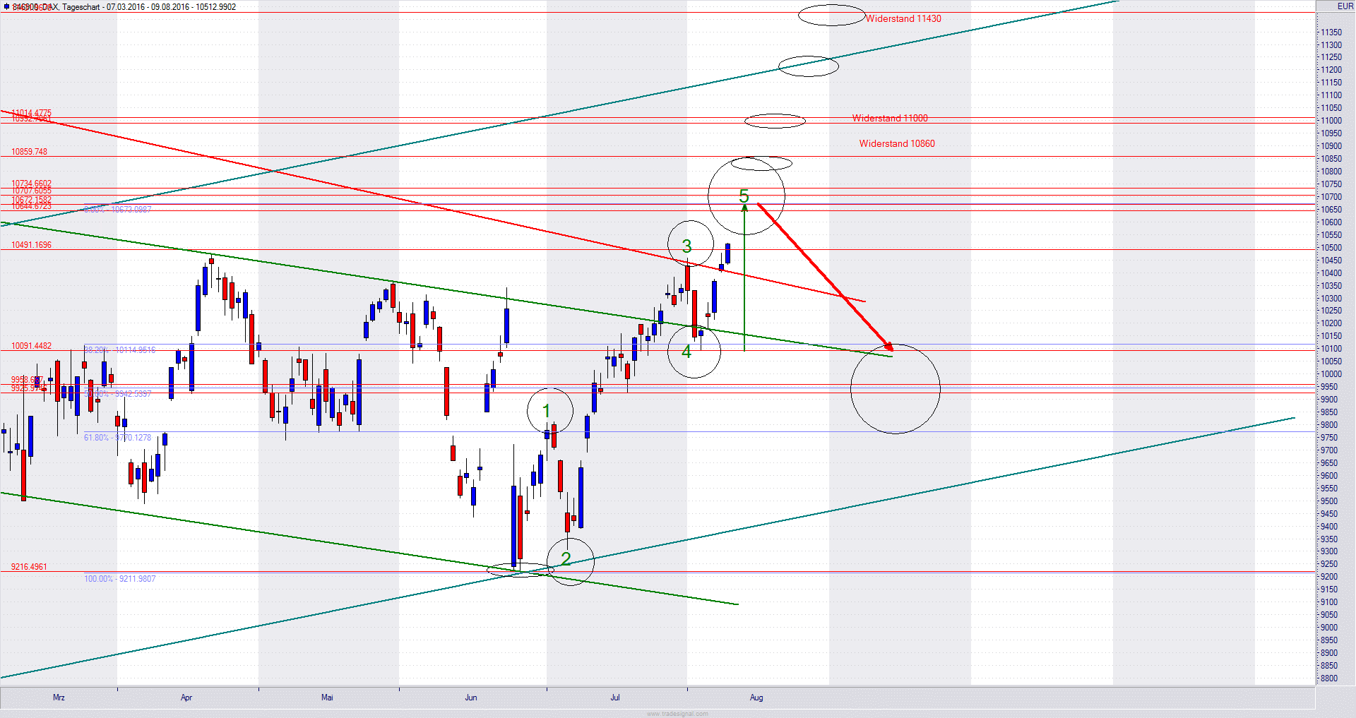 Nach Abschluss von 5 werden wir zumindest einen Rücksetzer zu 10100 erleben, also bereits ab heute ein Abwärtspotential von über 400 Punkten und je nach Einstieg eventuell sogar 600 Punkte. ( bei einer "NUR" Korrektur)