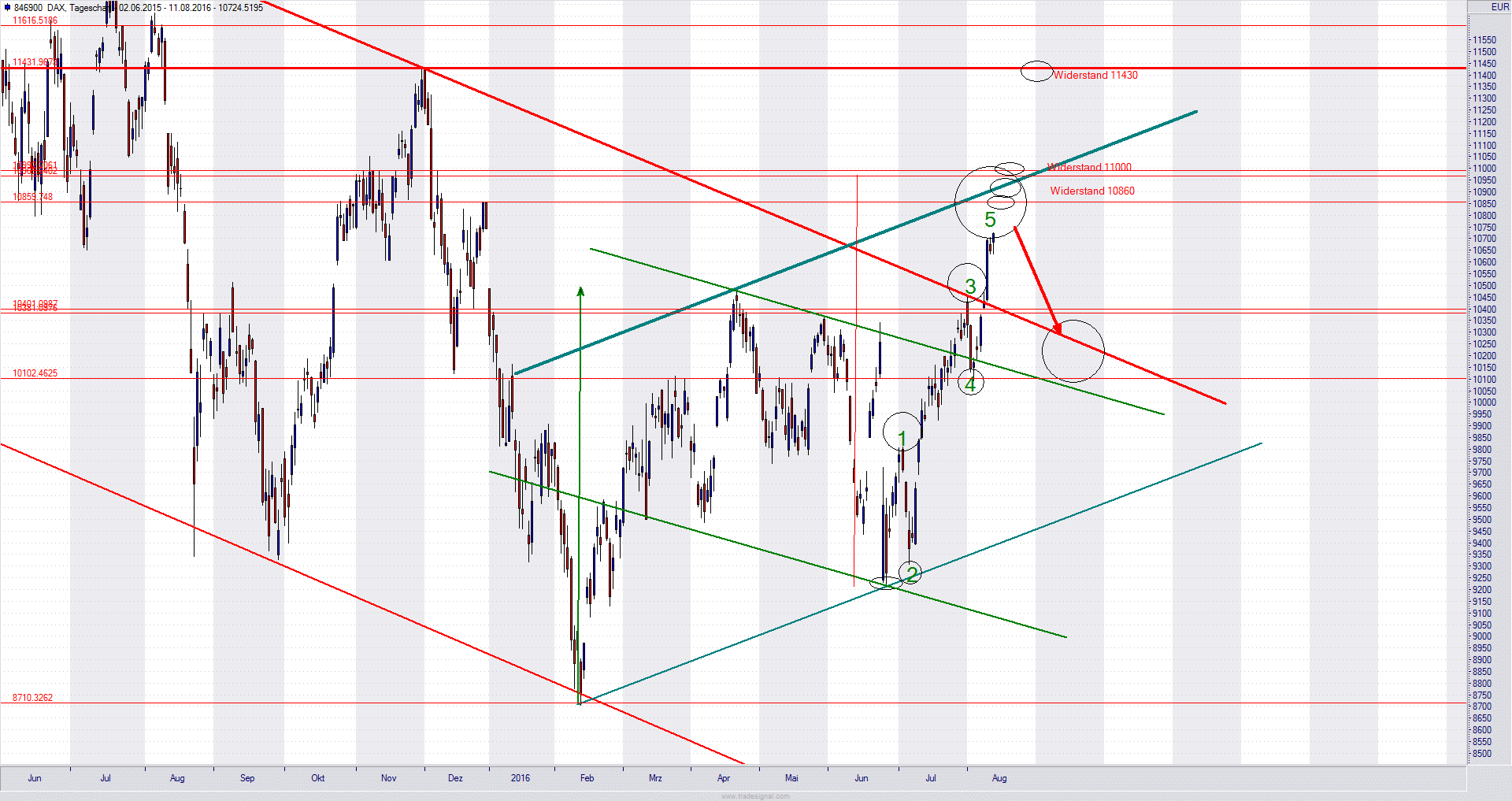 Imho dreht der Dax sehr bald nach unten ab, oder eben erst am Idealziel bei 11000.