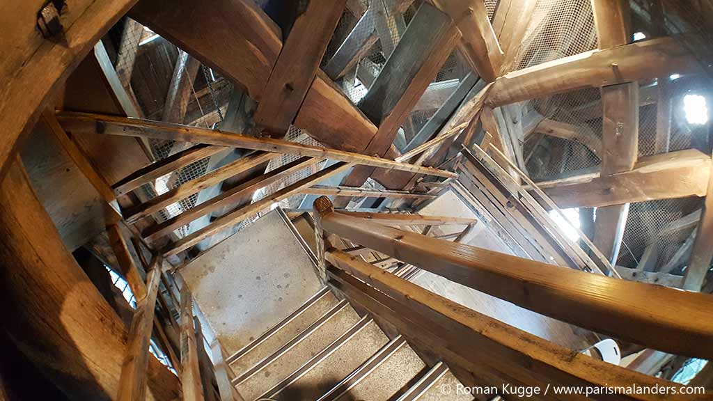 Jetzt frage ich mich, wie jemand vom Gerüst aus aufs Dach und dann in den Innenbereich hineinkommt, also in den Dachstuhl. Gibts da Luken? Auf dem Foto von der Treppenanlage siehts danach aus, - aber es ist nicht zu erkennen, ob diese vergittert oder überhaupt mit Glasscheiben zu sind. Ich hab trotz intensiver Suche kein Foto gefunden, das eine Möglichkeit aufzeigt, von der Gerüstseite aus in den Innenbereich der Kirche zu kommen.